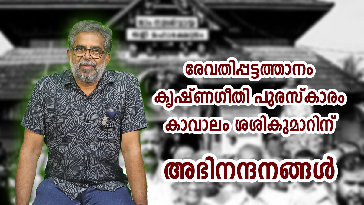 കാവാലം ശശികുമാറിന് രേവതി പട്ടത്താനത്തിന്റെ കൃഷ്ണഗീതി പുരസ്കാരം കോഴിക്കോട്: സാമൂതിരി രാജയുടെ നേതൃത്വത്തിലുള്ള രേവതി പട്ടത്താന സമിതിയും തളി മഹാക്ഷേത്രവും സംയുക്തമായി നൽകുന്ന കൃഷ്ണഗീതി പുരസ്കാരത്തിന് പ്രശസ്ത കവിയും മാധ്യമപ്രവർത്തകനുമായ കാവാലം ശശികുമാർ അർഹനായി. […]