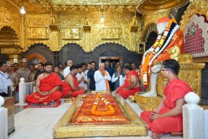 ഷിർദ്ദി (മഹാരാഷ്ട്ര): 1857 ലെ ഐതിഹാസികമായസ്വാതന്ത്ര്യ പോരാട്ടത്തിന് ശേഷം ഭാരതത്തിൽ ആത്മീയനവോത്ഥാനത്തിന് പ്രേരണയായ ദിവ്യവിഭൂതികളിൽ ഒന്നാണ് ഷിർദ്ദി സായിബാബയുടെ സാന്നിധ്യമെന്ന് ആർ എസ് എസ് സർസംഘചാലക് ഡോ. മോഹൻ ഭാഗവത്. സായിബാബ മന്ദിരത്തിൽ ദർശനം നടത്തിയതിന് ശേഷം അദ്ദേഹം സന്ദർശകപുസ്തകത്തിലാണ് ഈ അഭിപ്രായം രേഖപ്പെടുത്തിയത്. സാധന സമാധിക്ക് ശേഷവും അദ്ദേഹം ആയിരങ്ങളെ പ്രചോദിപ്പിക്കുന്നുവെന്ന് മോഹൻ ഭാഗവത് കുറിച്ചു. സായി മന്ദിർ ചീഫ് എക്സിക്യൂട്ടീവ് ഓഫീസർ ഗോരക്ഷ് ഗാഡിൽക്കൽ ഐ എസ് സർസംഘചാലകിനെ സ്വീകരിച്ചു.