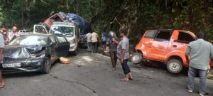 താമരശ്ശേരി ചുരത്തില് നിയന്ത്രണംവിട്ട ലോറി നിരവധി വാഹനങ്ങളിലിടിച്ച് അപകടം. കാറുകളും ബൈക്കുകളും ഉള്പ്പെടെ നിരവധി വാഹനങ്ങള് അപകടത്തില് പെട്ടു. ഒരു ലോറി ബ്രേക്ക് നഷ്ടപ്പെട്ടതിനെ തുടര്ന്ന് മറ്റു വണ്ടികളില് ഇടിച്ചാണ് അപകടം ഉണ്ടായത്. ഒരു കാര് തലകീഴായി മറിഞ്ഞു. ചരക്കുമായി വന്ന മിനി ലോറി കാറിനു മുകളിലേക്ക് മറിഞ്ഞ നിലയിലാണ്. കാറുകളും ഓട്ടോയുമടക്കം എട്ട് വാഹനങ്ങള് അപകടത്തില്പ്പെട്ടതായാണ് വിവരം. അപകടത്തില്പ്പെട്ടവരെ വിവിധ ആശുപത്രികളില് പ്രവേശിപ്പിച്ചിട്ടുണ്ട്. അപകടത്തെ തുടര്ന്ന് ചുരത്തില് ഗതാഗത തടസ്സം നേരിടുന്നുണ്ട്.